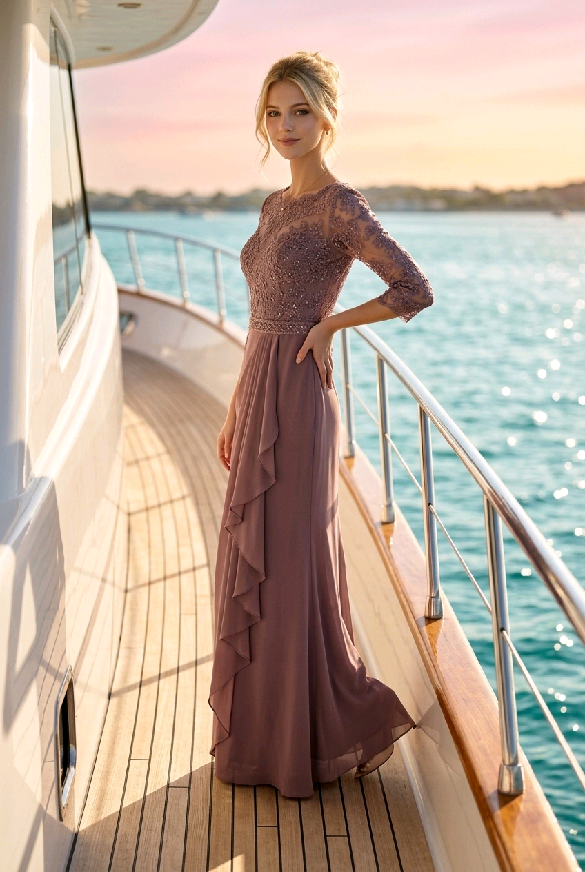 Diseño realizado en georgette con cuerpo de encaje rebrodé