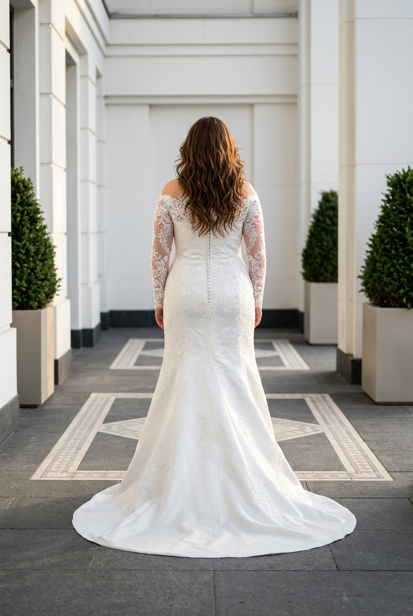 Vestido de novia realizado en mikado y encaje